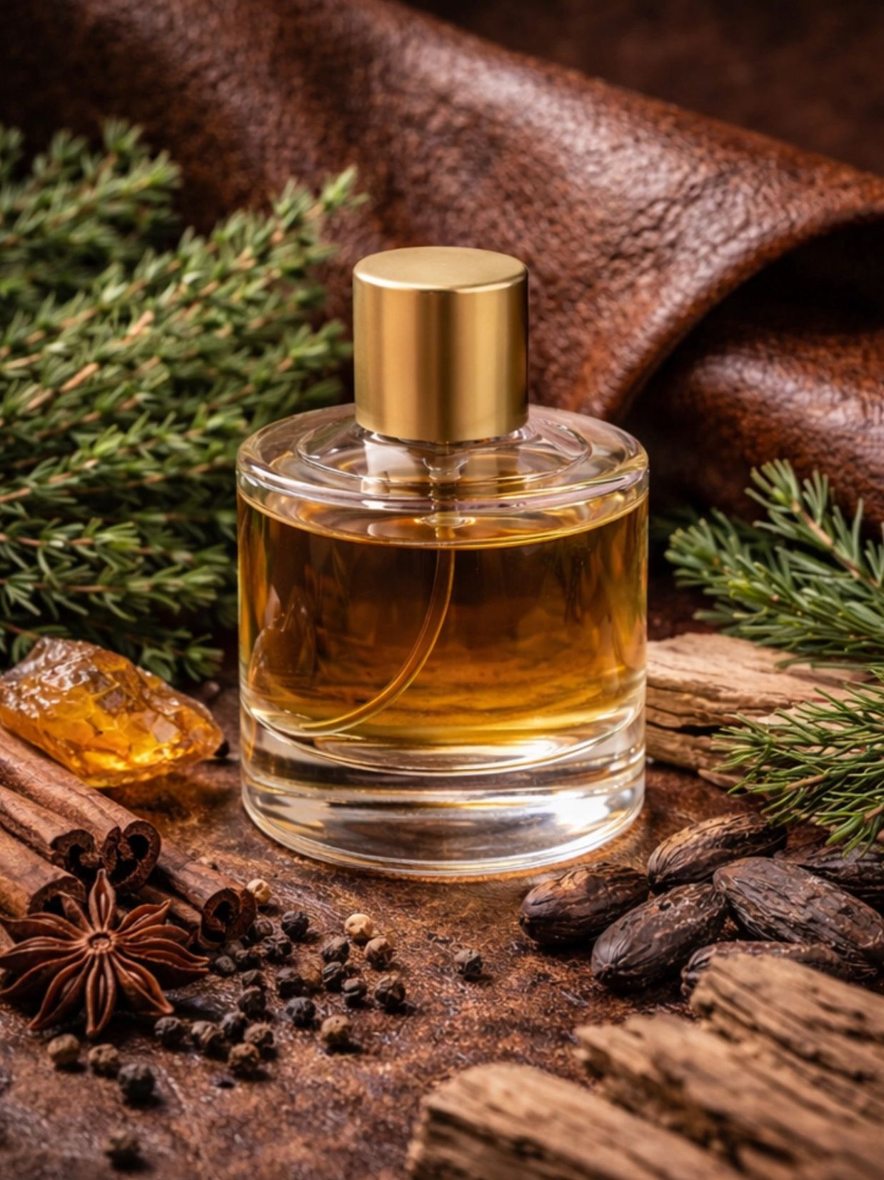 Warm spices complete the composition, creating a scent that embodies refined luxury, quiet confidence, and the noble presence of leather.